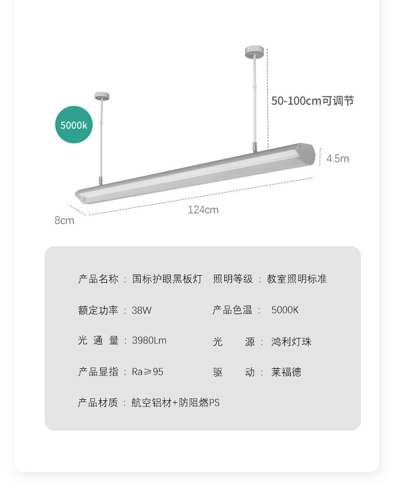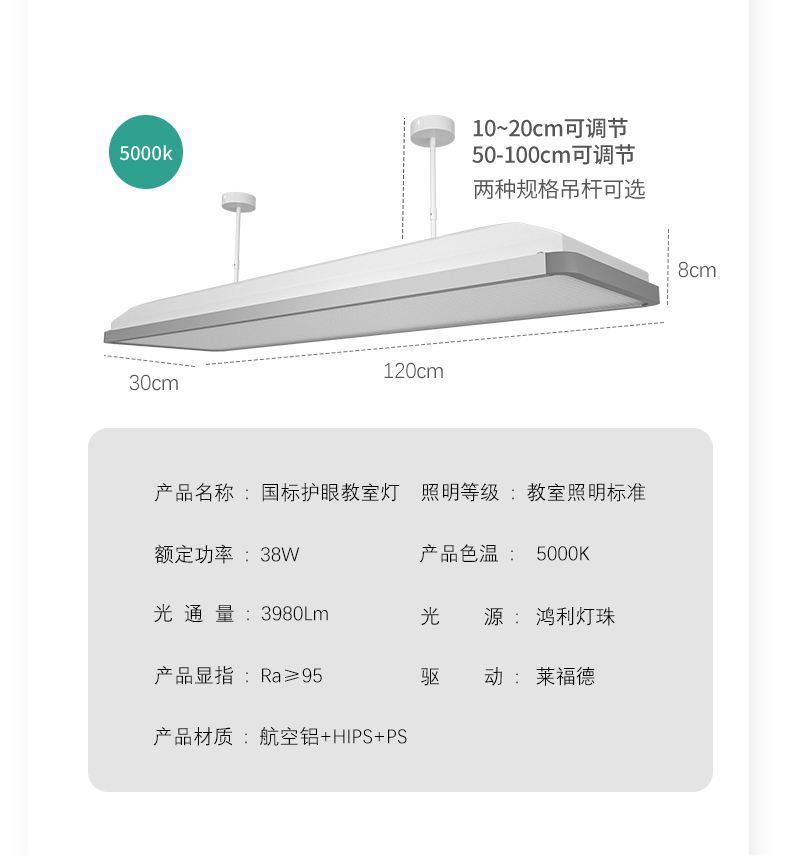 学校专用LED教室灯格栅学生护眼国标超麦照明吊灯防眩光黑板灯
